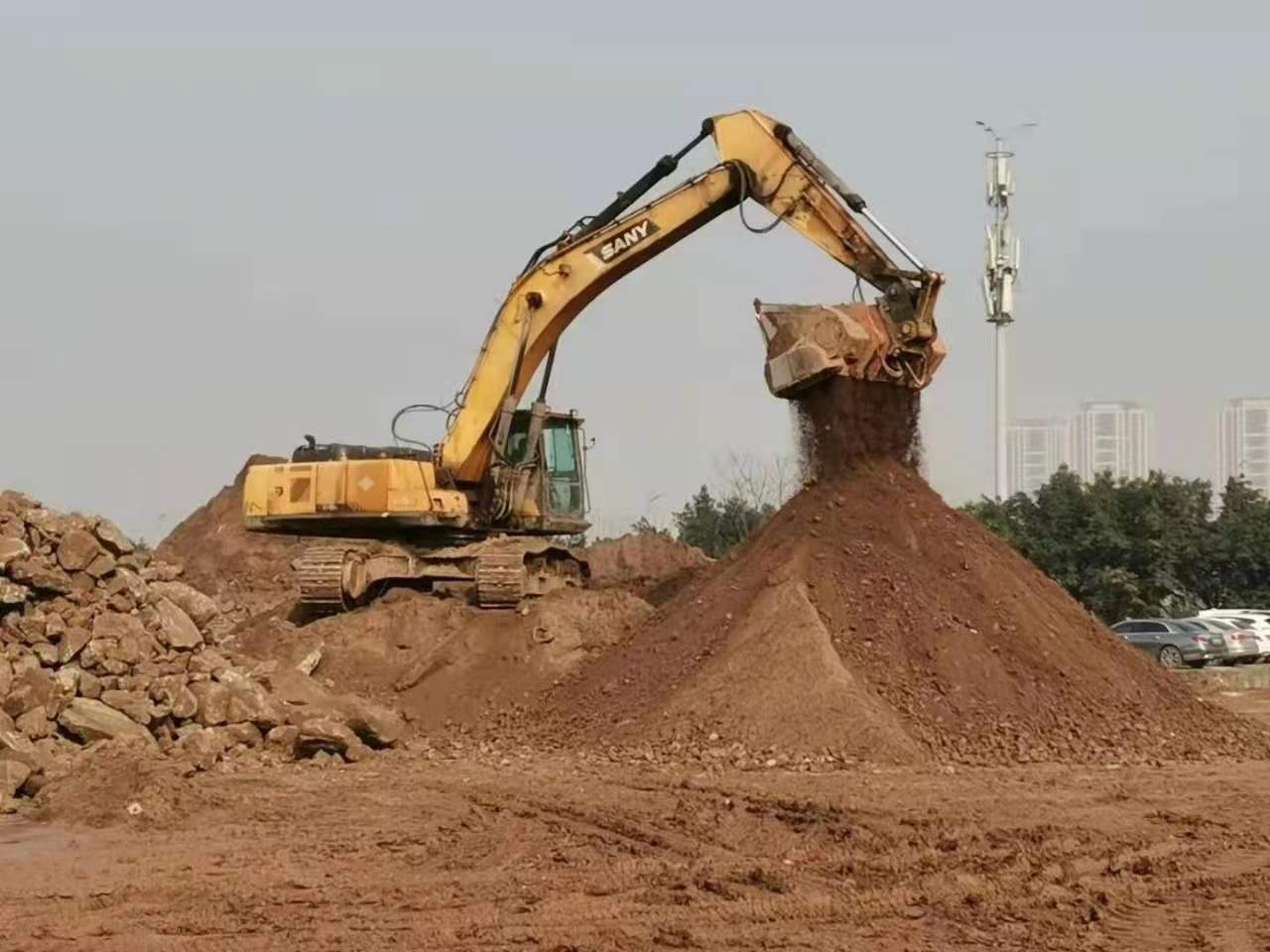 污染土壤修復治理現(xiàn)場(阿魯斗設備正將污染修復土壤進行破碎篩分工作)