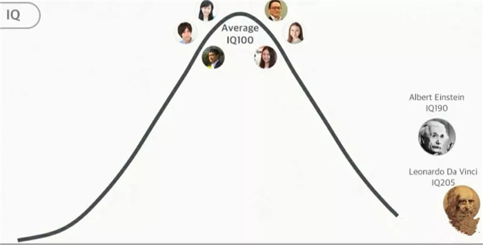 上面這張圖,人類正常的智商(IQ),都在100左右,罕見(jiàn)的天才愛(ài)因斯坦190,達(dá)芬奇205。那么請(qǐng)問(wèn),未來(lái)AI的智商,會(huì)是多少呢?